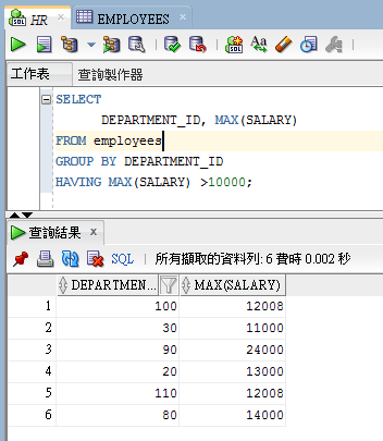 Oracle SQL HAVING 條件