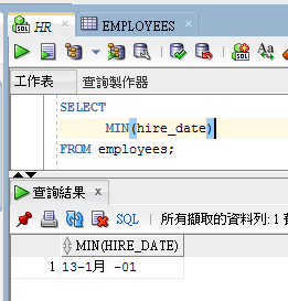 Oracle SQL MIN及MAX使用時間