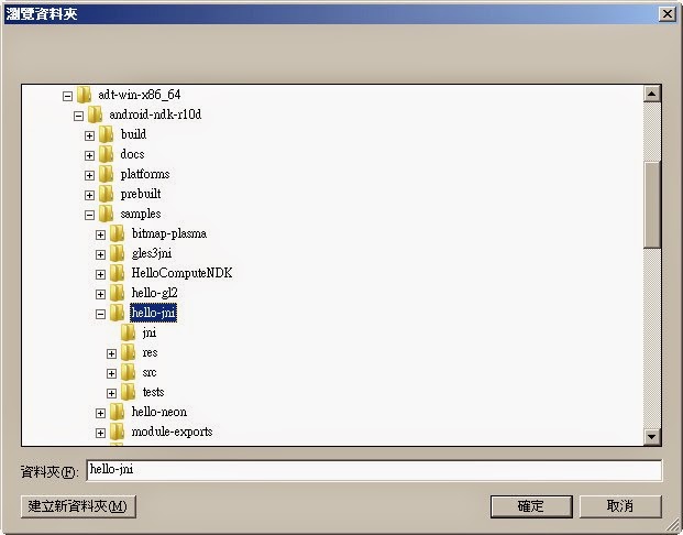 圖3 找原本NDK資料夾裡的範例程式。 [NDK目錄]\samples\hello-jni