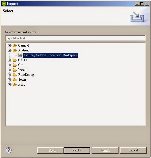 圖2 Exisitng Android Code Into Workspace