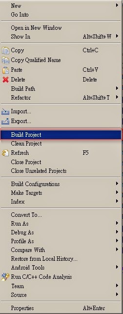 圖18 專案右鍵-> Build Project