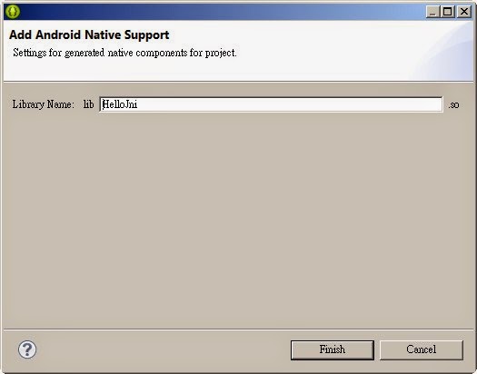 圖8 lib: HelloJni 預設跟專案同名 -> Finish
