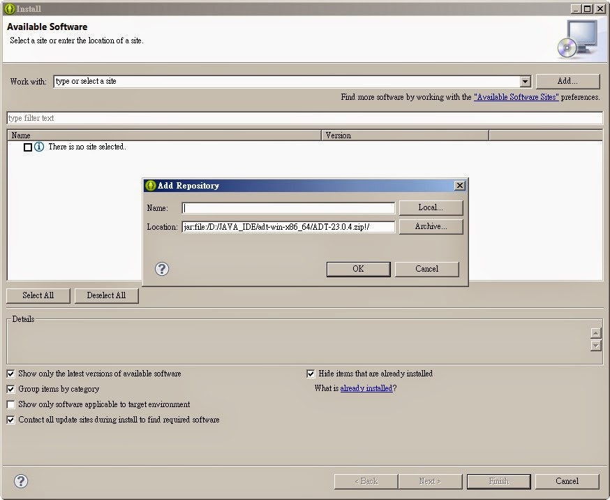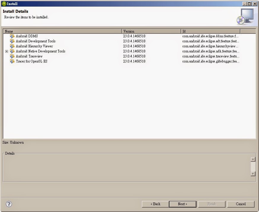 圖6 Android -> 你會看不到NDK 。需要安裝ADT-23.0.4.zip