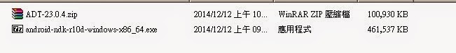 圖3 共二個檔 android-ndk-r10d-windows-x86_64.exe ADT-23.0.4.zip