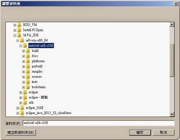 圖19 選擇 android-ndk-r10d 的目錄 -> 確定