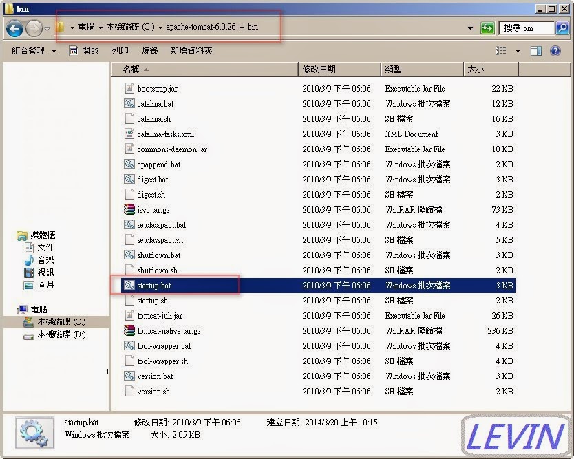 圖6 啟動 Tomcat -> startup.bat