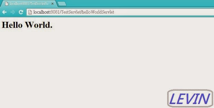 圖8 執行 網頁 localhost:8081/TestServlet/helloWorldServlet