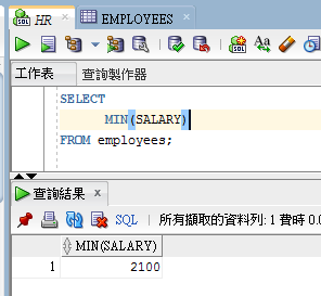 Oracle SQL MIN 用法教學 使用工具sqldeveloper 請先參考 sqldeveloper下載及安裝及連線 測試資料來源請先參考 Oracle DB 目錄