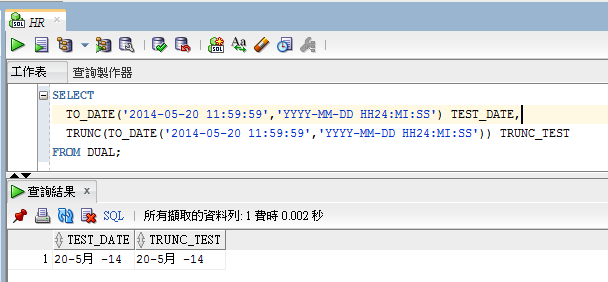 Oracle SQL trunc 日期用法教學 使用工具sqldeveloper 請先參考 sqldeveloper下載及安裝及連線 測試資料來源請先參考 Oracle DB 目錄
